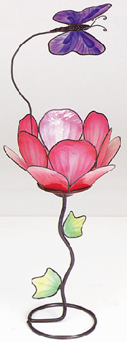 #29593 CAPIZ FLOWER AND BUTTERFLY CANDLEHOLDER $9.30