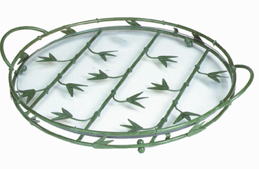 #29677 ROUND GLASS METAL BAMBOO TRAY $11.60